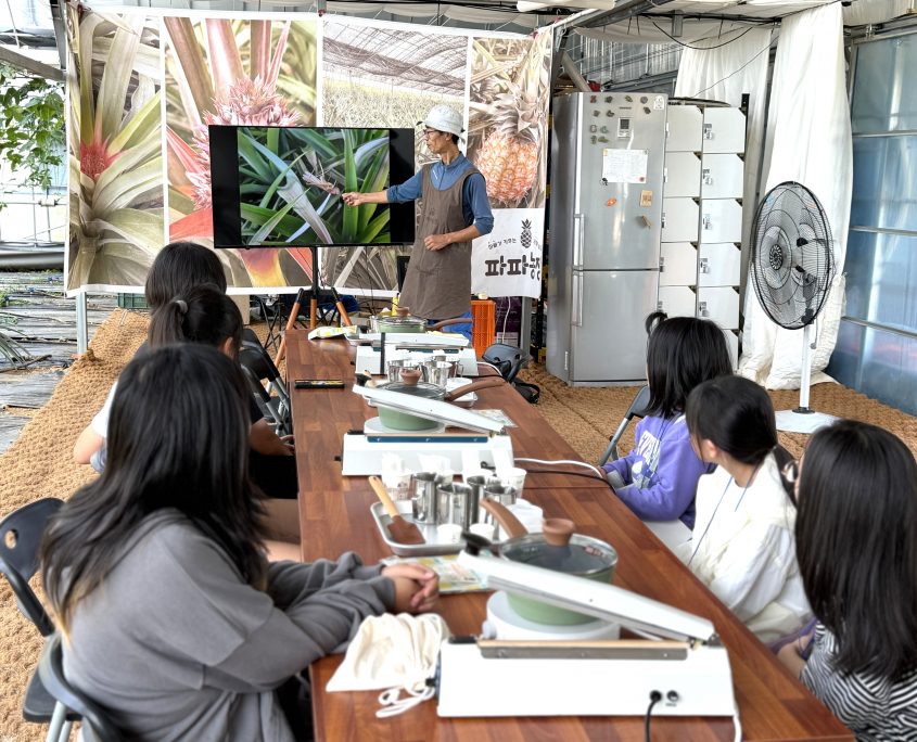 파인애플 과육을 맛보고, 과즙을 이용해 젤리도 만들고 화분에 모종도 심어보았습니다.
