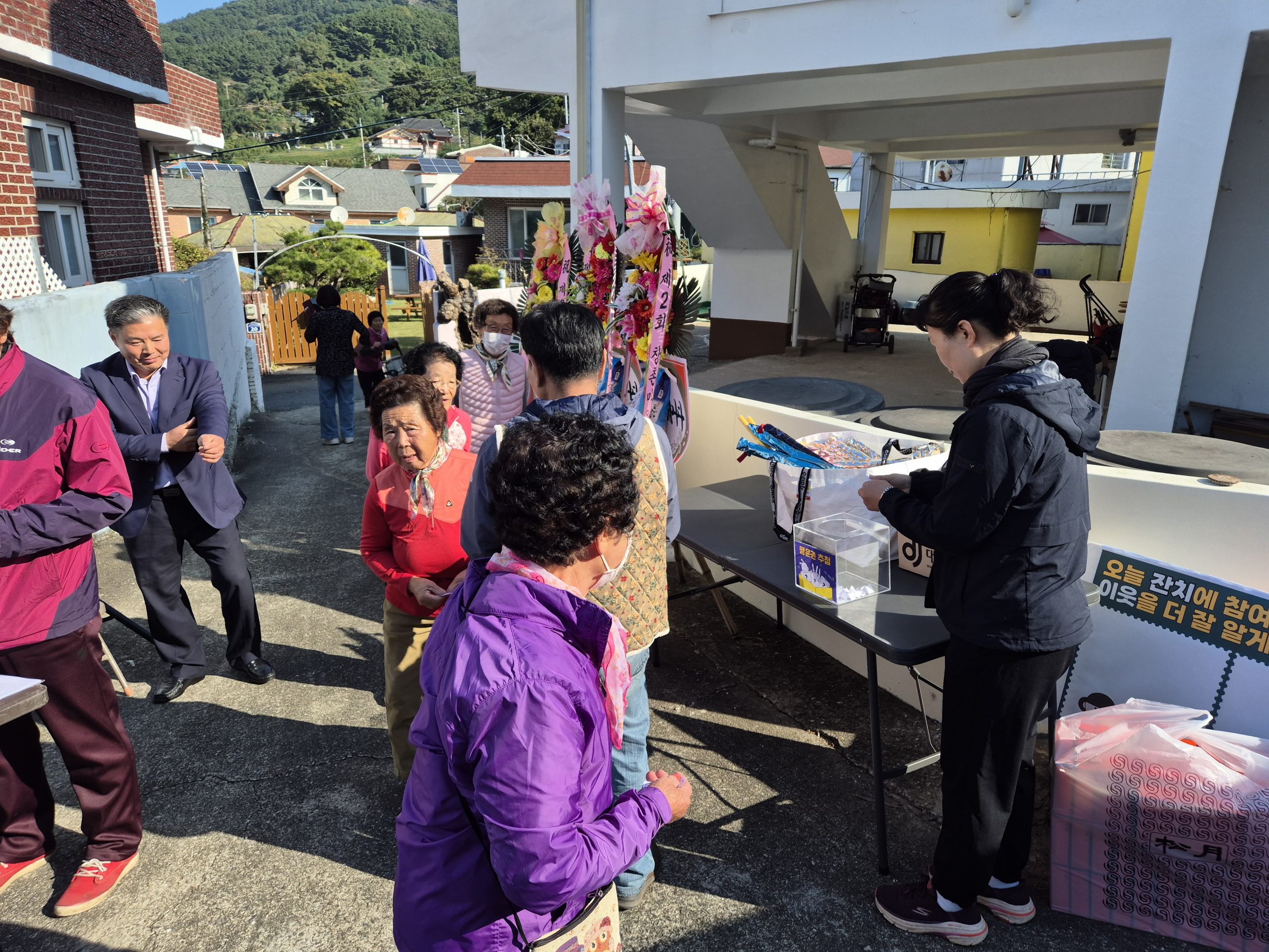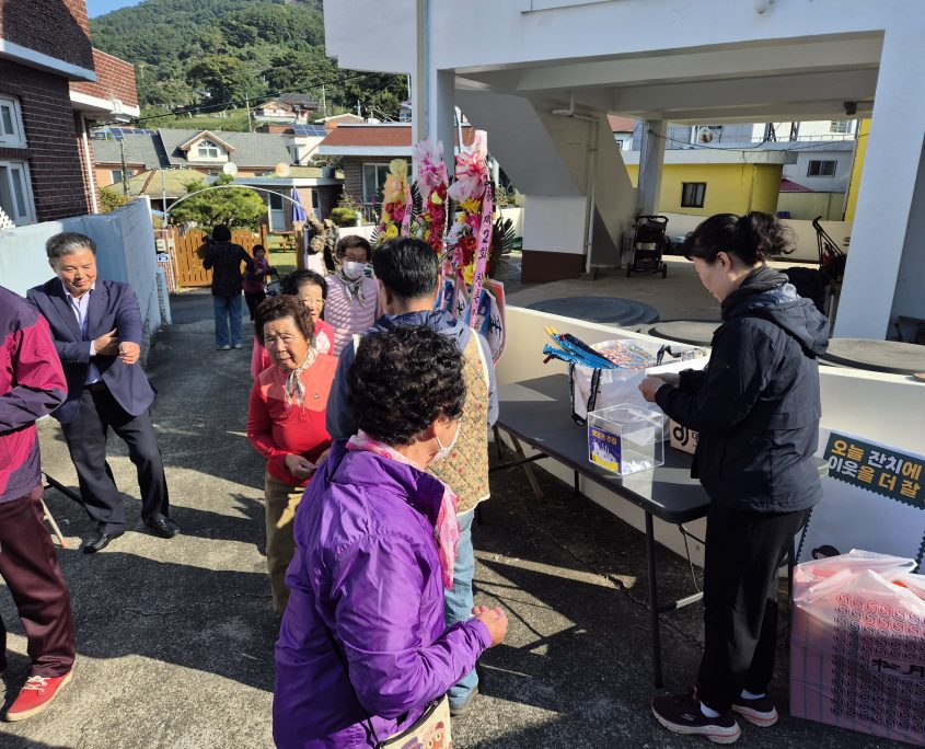 마을회관을 가득 채운 웃음소리 속에서 주민들이 직접 만든 음식이 나눠지고, 서로가 준비한 선물이 전해졌어요.