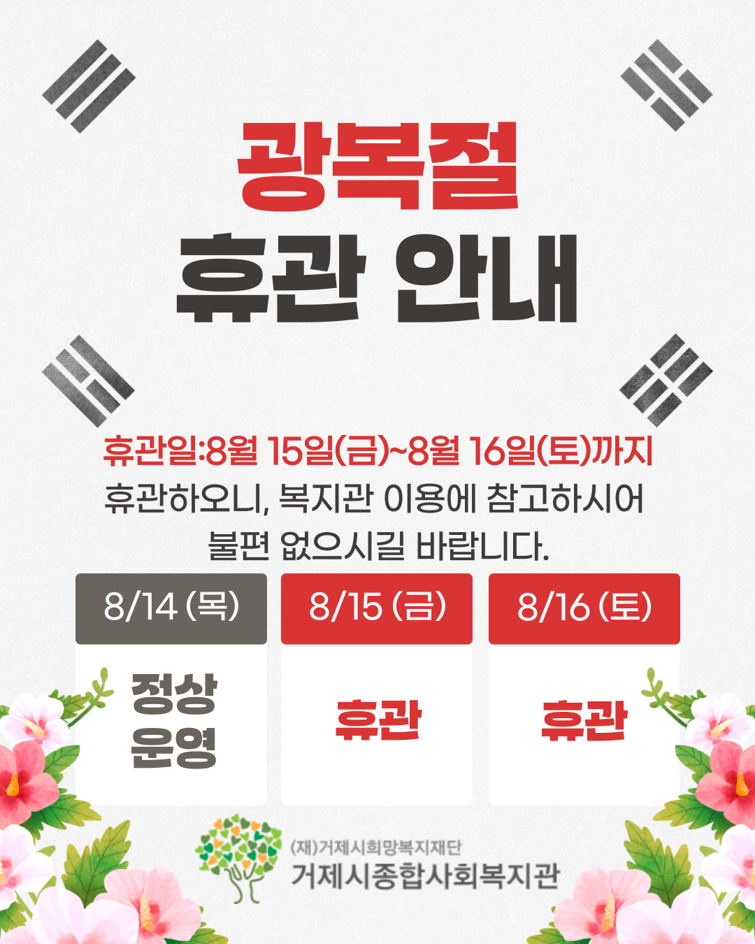 8월 광복절로 인해