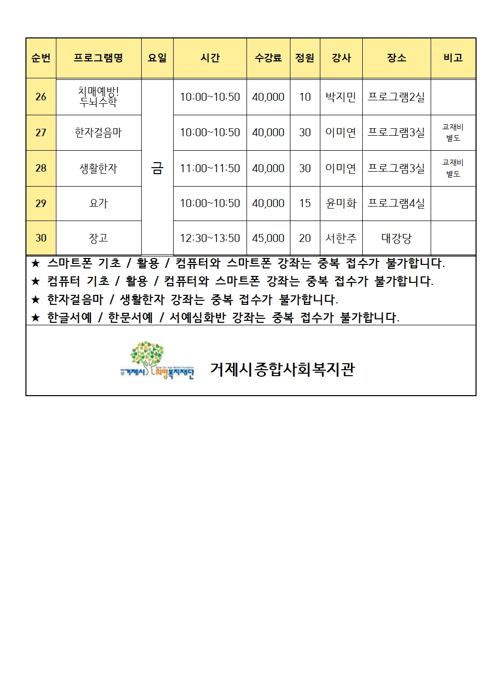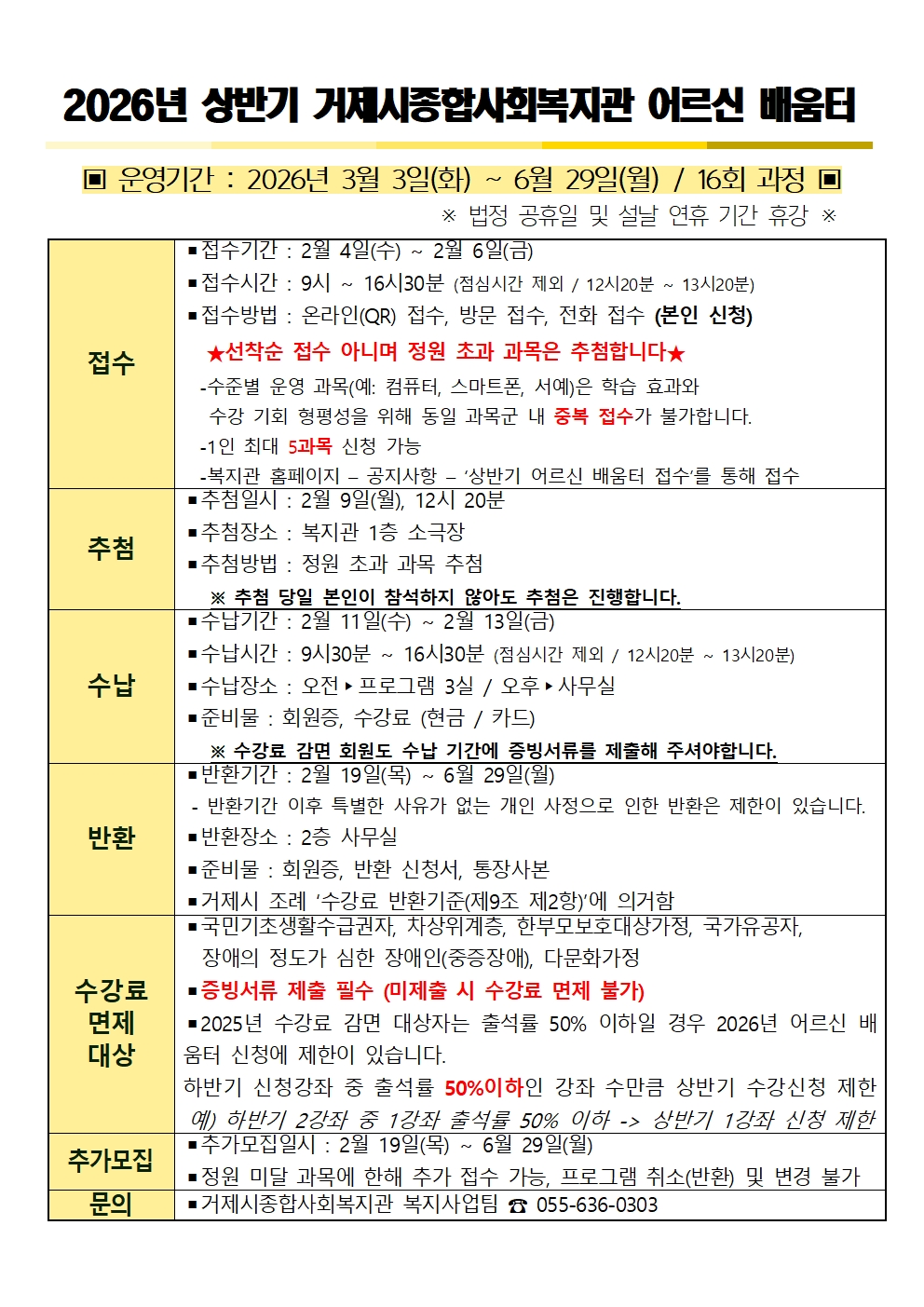 2026년 상반기 어르신 배움터 수강 안내입니다.