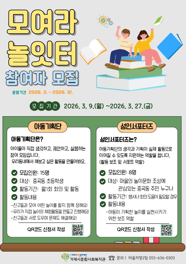 놀이에 관심이 있고 친구들과 즐거운 활동을 함께하고 싶은 중곡동 아동과 지역주민의 많은 관심과 참여 바랍니다.